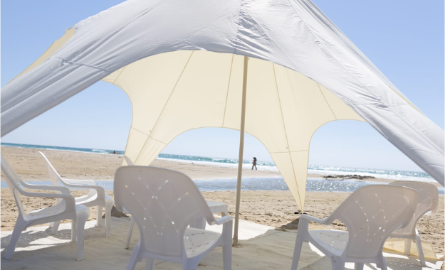 מאהלי לייקרה לבנים שיוצרים צל נעים ויפה,